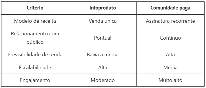 Comunidade paga não substitui completamente os infoprodutos, mas representa uma evolução natural dos modelos de monetização digital.